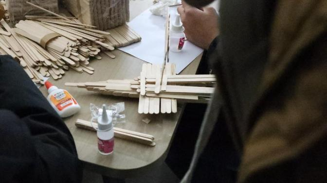 2024 年 11 月 28 日,bw必威西汉姆联提前布置好现场,并准备了A4纸、雪糕棍、白乳胶、手锯等手工材料等待同学们的到来,同学们在活动开始前陆续进场进行活动签到,并耐心听取主持人详细的讲解活动规则。