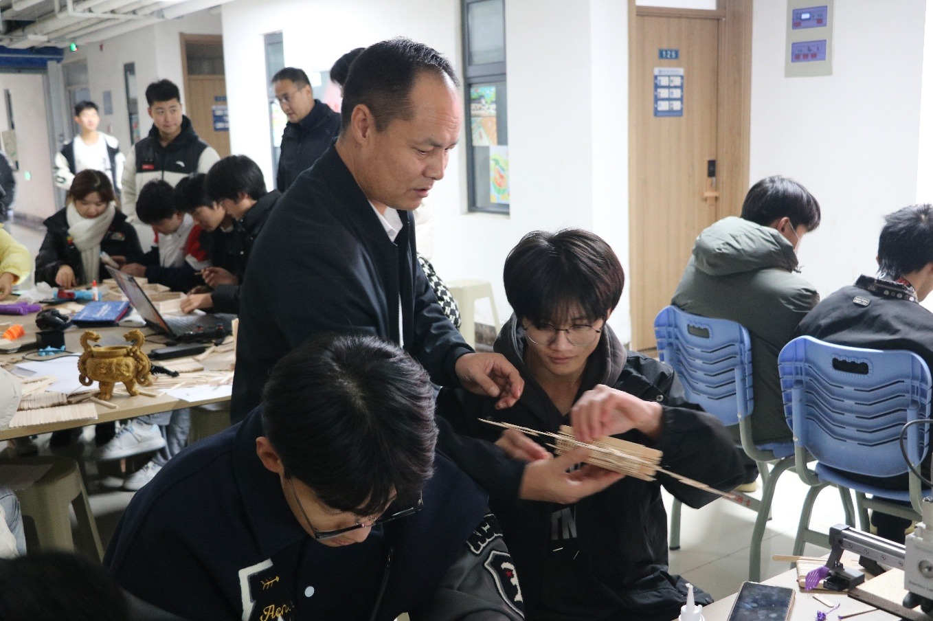 主持人宣布活动正式开始,同学们根据自己队伍的喜爱和创意,开始动手搭建3D建模原型,同学们充分发挥创新思维与专业技能,运用 3D 建模软件和雪糕棍,精心设计出一个个独具匠心的作品。从精致的机械零件到富有创意的生活小物件,无不展现出选手们扎实的专业功底与无限的创意潜力,活动如火如荼的开展。在3D建模搭建过程中,同学们不仅体验到了竞争的激烈,更在潜移默化中加深了对3D打印技术的认识,同学们也加深了彼此之间的了解和友谊。