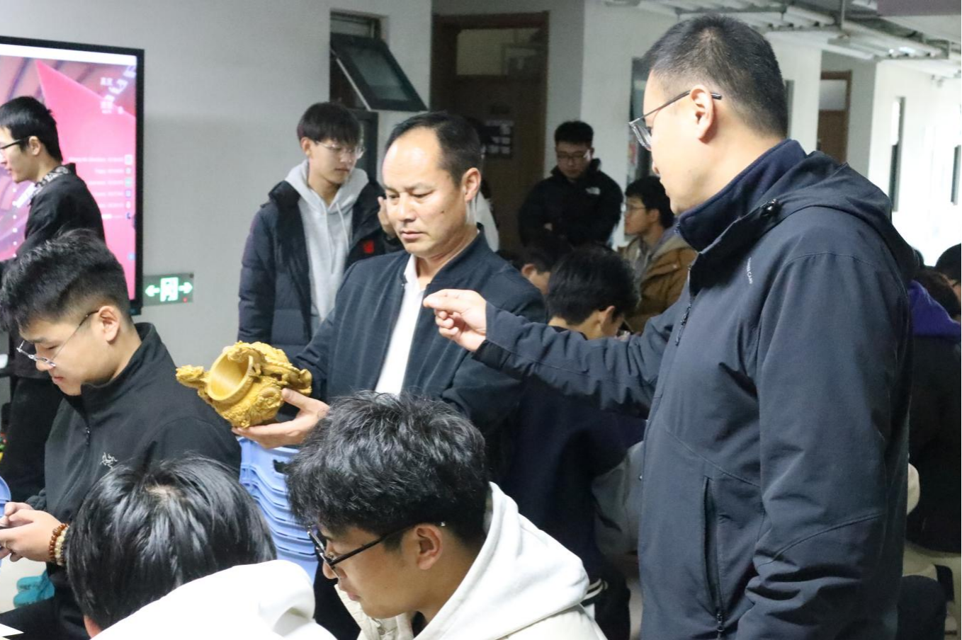 为了让同学们对3D打印技术有更直观的了解,主持人讲解了3D打印机的工作原理,并简单地对同学们教授建模软件的使用,现场还带去了小型的3D打印机以及3D打印制作的小物品。