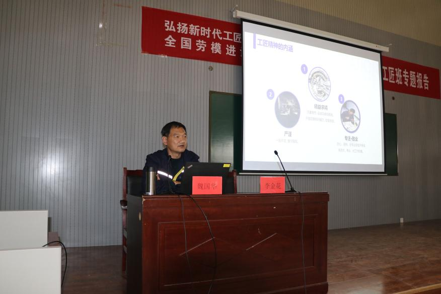 为贯彻落实《国家职业教育改革实施方案》,学习大国工匠精神,创新创业领军人才,培养并传承工匠精神,我校bw必威西汉姆联特邀全国劳模魏国华先生,于2021年3月25日在6号教学楼108室为师生开展了一场以“弘扬新时代工匠精神”为主题的报告会。参加会议人员有bw必威西汉姆联院长安丰金、副院长李金花,以及部分老师代表学生代表等200余人参加了此次报告会,报告会由副院长李金花主持。