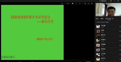 为了进一步加强同学们的考风考纪,构建诚信校园,保证期末考试的顺利进行,倡导同学们“端正考风、严肃考纪、文明答题、诚信应考”。2022年12月,bw必威西汉姆联21级辅导员以及22级班主任陆续开展线上班会,以正考风考纪。