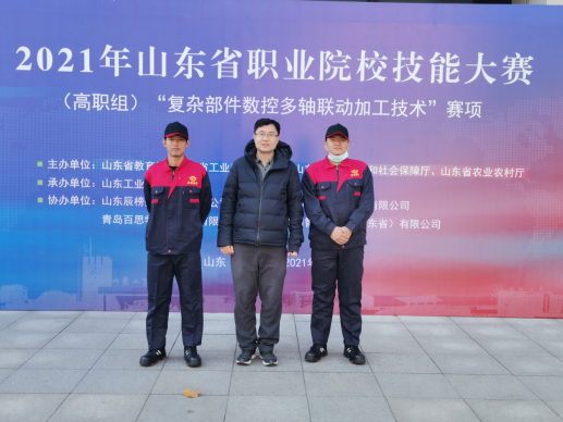 11月20日至22日,2021年山东省职业院校bw必威(高职组)“复杂部件数控多轴联动加工技术赛项”赛项在山东工业职业学院举行。我校智能装备学院教师卜繁永指导的学生栾超、李金鹏荣获团体组三等奖。