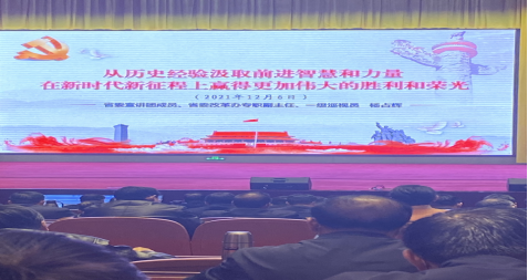 省委宣讲团成员、省委改革办专职副主任、一级巡视员杨占辉为大家作了《从历史经验汲取前进智慧和力量,在新时代新征程上赢得更加伟大的胜利和荣光》的报告。杨主任从四个方面、四个阶段进行了解读,通过培训对党的十九届六中全会有了更进一步的认识。
